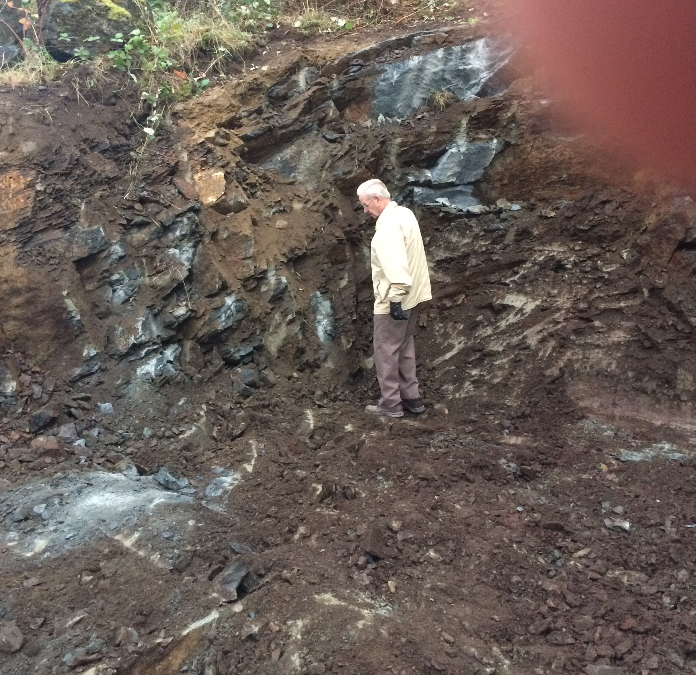 View towards the back of the neighbours lot, with Eric. You can see the rock ridge that runs along the back of the lots. October 28, 2016 — Leave a comment View towards the back of the neighbours lot, with Eric. You can see the rock ridge that runs along the back of the lots.